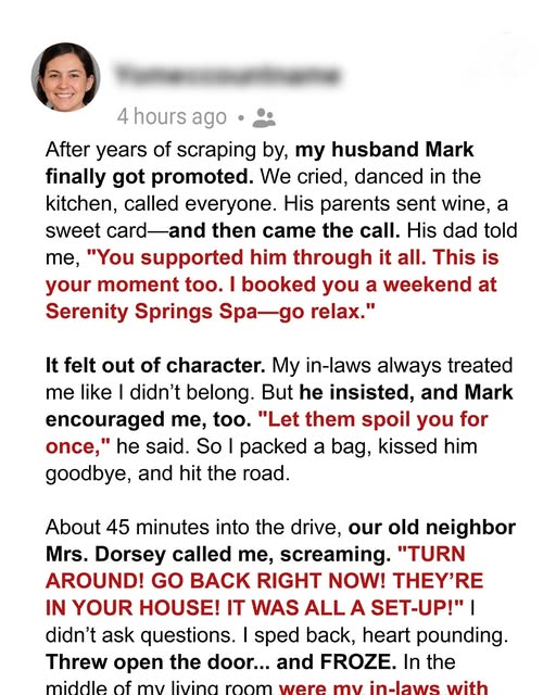 It was out of character. In the five years I’d been married to their son, his parents had treated me like I was a temporary guest in a permanent house. Polite. Cool. Measuring. But Mark squeezed my shoulders. “Let them do something nice,” he urged. “For once.”