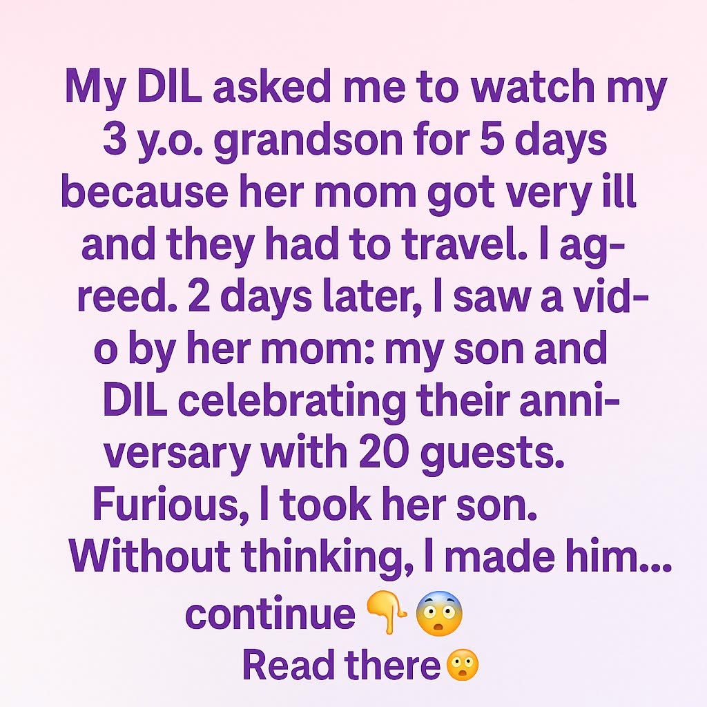 When my daughter-in-law asked me to care for my 3-year-old grandson for five days, she explained that her mother had suddenly fallen ill and they needed to travel immediately. I didn’t hesitate. I loved my grandson dearly, and I was glad to help during what I believed was a difficult time.