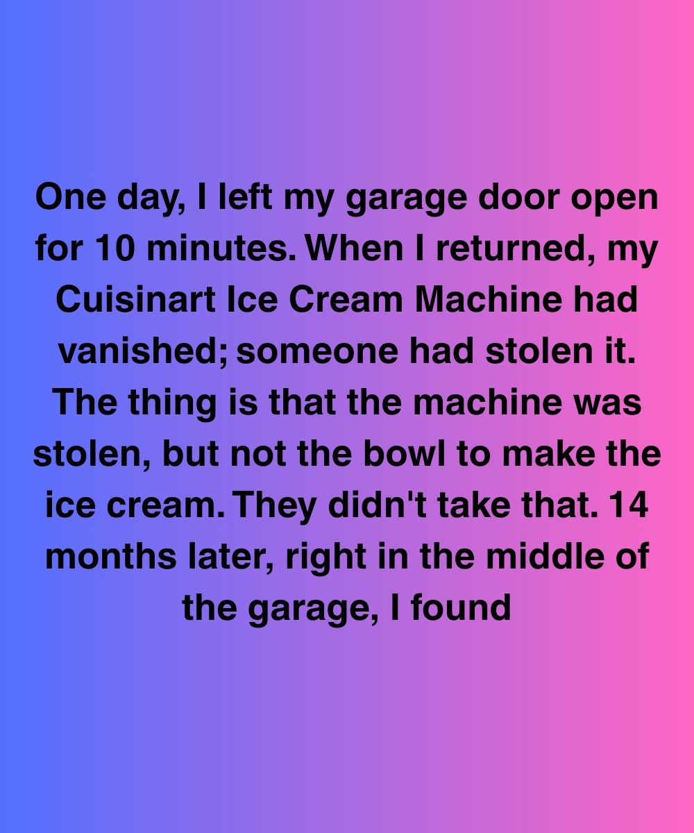 Life went on, but every time I saw the lonely freezer bowl sitting on the shelf, I felt a little pang of irritation. Fourteen months later, something unbelievable happened. I went into the garage to grab a box of holiday decorations and froze in my tracks. Right in the center of the garage floor sat my ice cream machine. It was spotless, gleaming like it had just been unboxed. Beside it was a neatly folded note. My hands trembled as I opened it.
