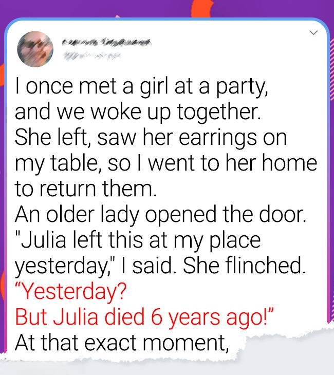 It was supposed to be a normal night—a party, some drinks, laughter, and the excitement of meeting someone new. He met a girl named Julia, and they instantly connected. The next morning, she was gone, but she had left behind a pair of delicate earrings on his table. Wanting to return them, he decided to visit her home, completely unaware of what awaited him.