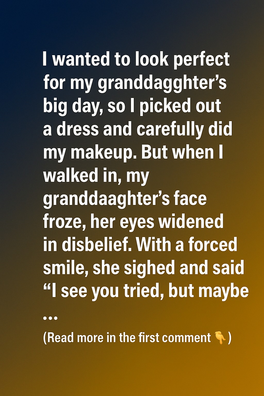 I wanted to look perfect for my granddaughter’s big day, so I picked out a dress and carefully did my makeup. I hadn’t been this excited in years. Today, she was graduating, and I wanted her to see how proud I was of her. But when I walked in, my granddaughter’s face froze. Her eyes widened in disbelief. With a forced smile, she sighed and said, “I see you tried, Grandma, but maybe… you should’ve gone with something simpler.”