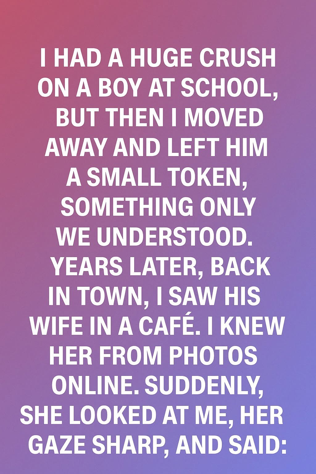I had a huge crush on a boy at school, but then I moved away and left him a small token, something only we understood. Years later, back in town, I saw his wife in a café. I knew her from photos online. Suddenly, she looked at me, her gaze sharp, and said “You’re