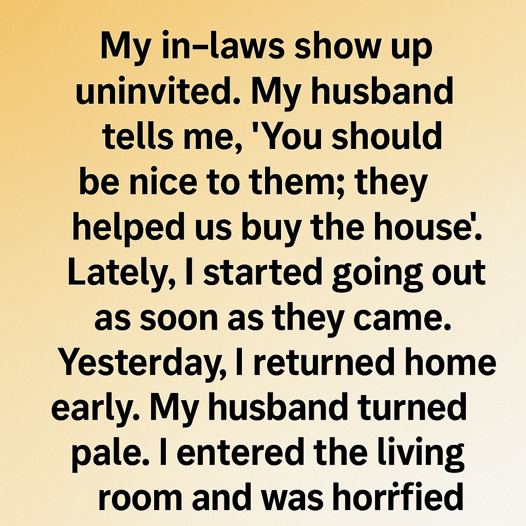 My in-laws show up uninvited. My husband tells me, ‘You should be nice to them; they helped us buy the house.’ Lately, I started going out as soon as they came. Yesterday, I returned home early. My husband turned pale. I entered the living room and was horrified… I froze at the doorway. The room was covered with open boxes, papers, and old photographs scattered everywhere. My in-laws were sitting on the floor, holding family albums I had never seen before.