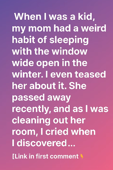 Every cold breeze that drifted through that open window carried her silent strength, a message that no matter how hard life got, there was always fresh air to breathe and a new day waiting. That night, I opened my own bedroom window wide. As the icy air filled the room, I felt her presence, her quiet courage surrounding me. And for the first time since she passed, I didn’t feel so alone.