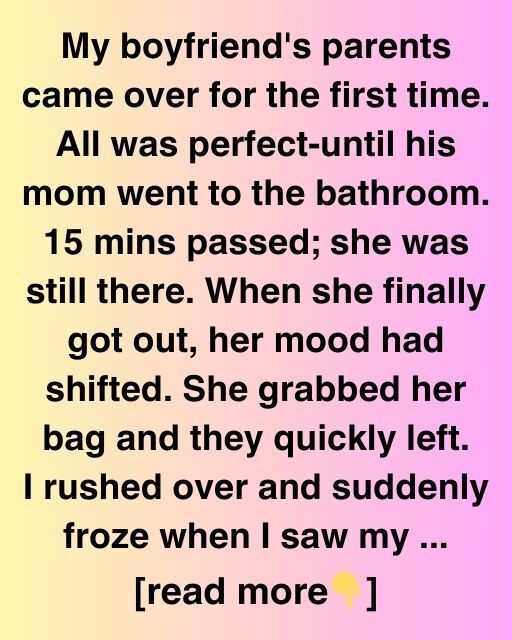 My boyfriend’s parents came over for the first time. All was perfect—until his mom went to the bathroom. 15 minutes passed; she was still there. When she finally got out, her mood had shifted.
