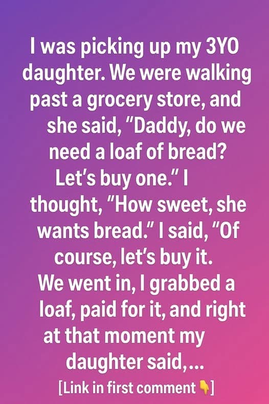 I was picking up my 3-year-old daughter from daycare one sunny afternoon. On our way home, we passed by a small grocery store. She tugged at my hand, her little eyes wide with excitement, and said,“Daddy, do we need a loaf of bread? Let’s buy one.”I smiled, touched by her thoughtfulness. How sweet, I thought. She must really love bread and wants to help.