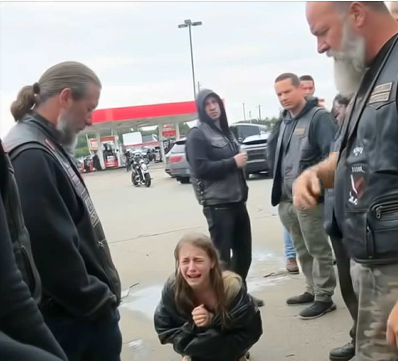 At a crowded gas station, chaos erupted when a teenage girl ran barefoot toward a group of bikers, crying and begging for help. To bystanders, it looked like a nightmare unfolding. Many assumed the bikers were harassing her, and within moments, phones were out and 911 calls poured in.