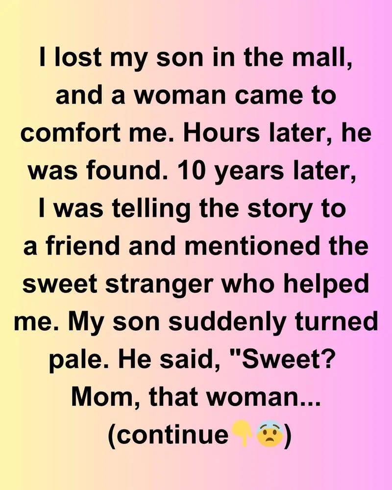 I lost my son in the mall, and a woman came to comfort me. Hours later, he was found.