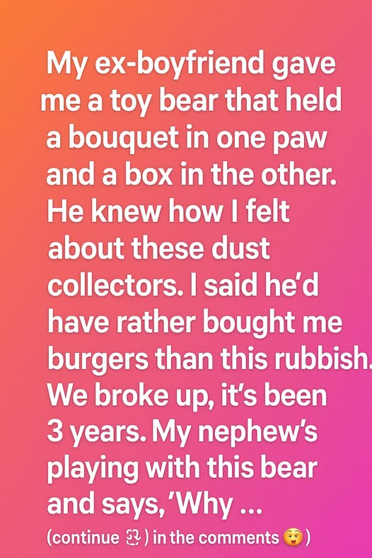 My nephew watched me closely and asked, “Are you going to throw it away now?” I shook my head with a soft smile. “No,” I said, placing the bear back carefully. “Some things aren’t meant to be thrown away. They remind us of who we were, how far we’ve come, and sometimes… what we missed the first time.”