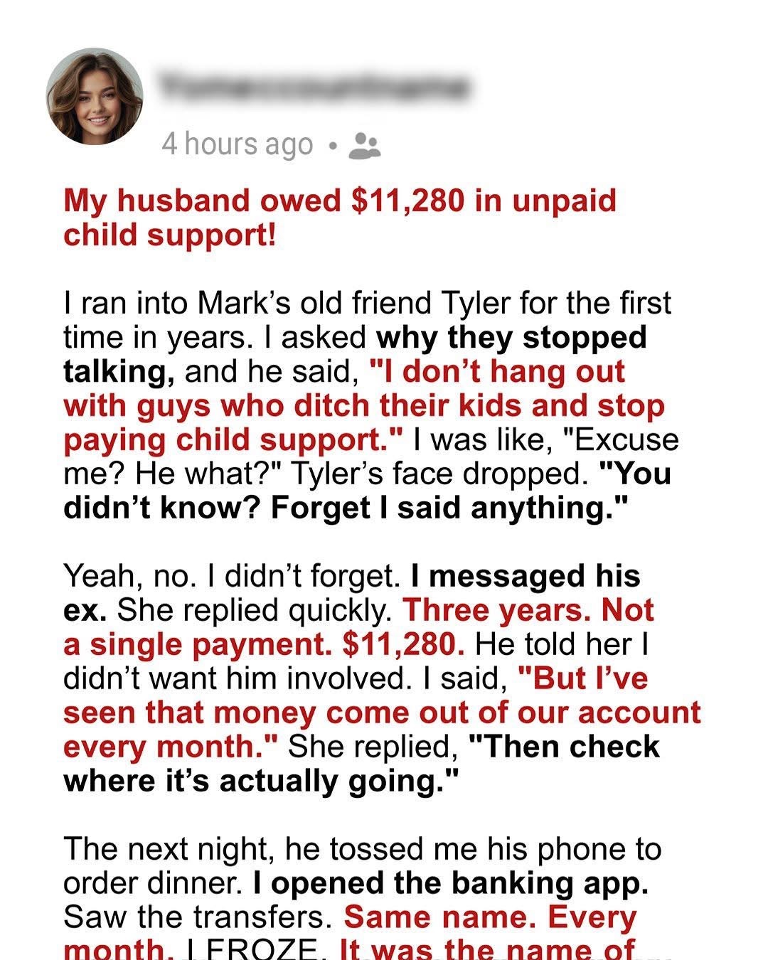 They say trust is everything in a marriage. I believed that until a stranger revealed something about my husband that turned my world upside down. A casual conversation led me to uncover years of unpaid child support and a secret that changed everything. My name is Camila, and I thought I knew my husband, Mark….