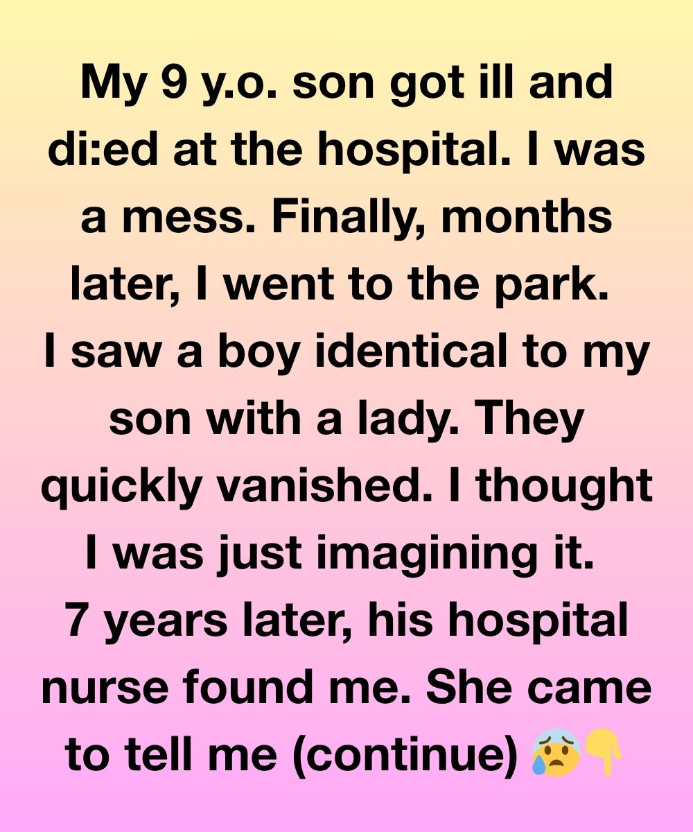 Finally, months later, I went to the park. There, I saw a boy who looked identical to my son, standing with a woman. They quickly vanished. I thought I was just imagining things.