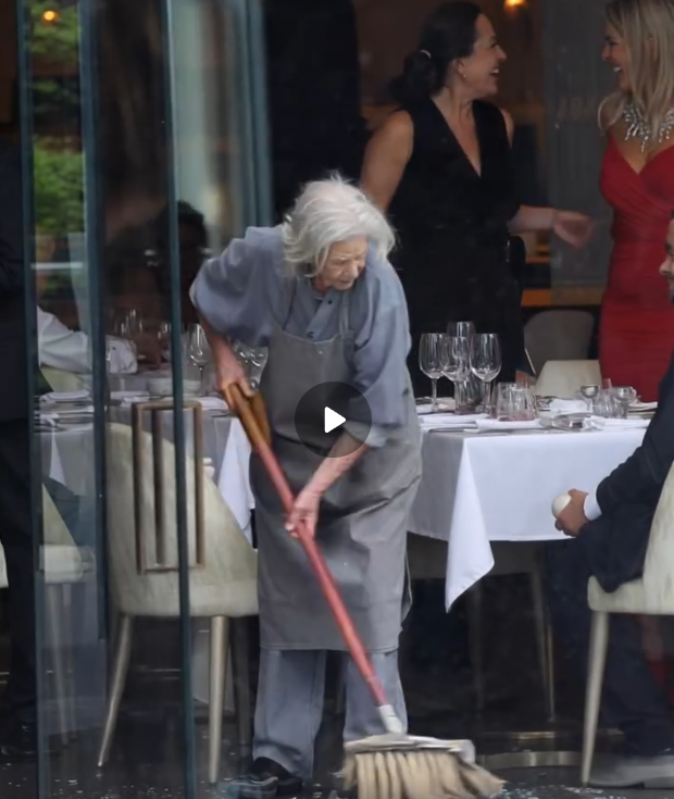 Their table was close, and their remarks echoed through the room. When a cleaner arrived to tidy up a spilled drink, their attention turned to her. She was an elderly woman, moving carefully as she worked. Instead of kindness, the group began making insensitive comments about her age and appearance. She kept her head down, quietly cleaning, while their laughter filled the air.
