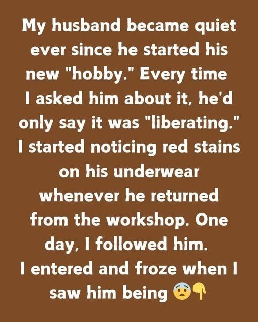 My husband became quiet ever since he started his new “hobby.” Every time I asked him about it, he’d only say it was “liberating.”