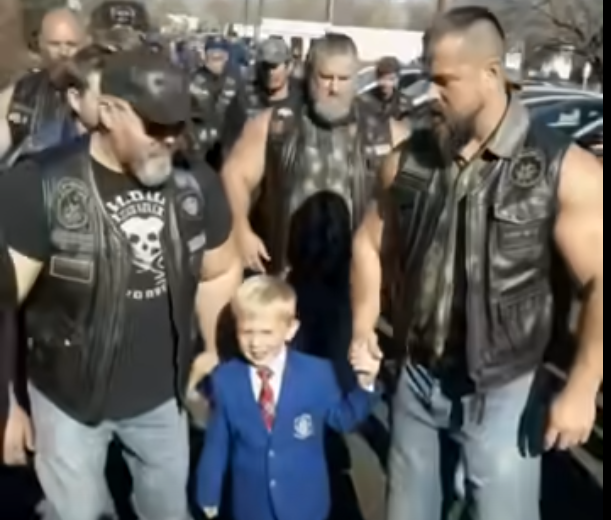 That became our new normal. Every morning, Tommy was escorted past the school gates by at least two bikers—sometimes just Bear and Cricket, other days the whole pack. Their leather jackets cracked and engines purred in a comforting rhythm. The school even reserved a special parking spot for them. Slowly, Tommy’s fear faded. He began sleeping in his own bed again. He even joined the school’s “Kindness Club,” eager to help other kids who felt lonely during recess.