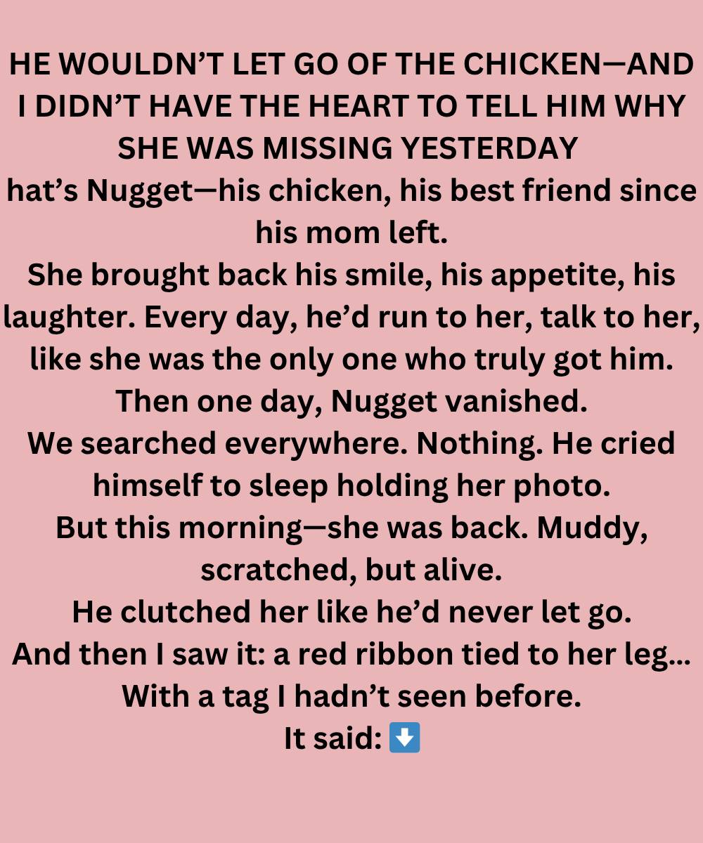 I didn’t say anything. I just watched him, holding Nugget like she was a precious treasure. My heart ached for him, for the way he clung to this small, feathered creature as if she were the only thing anchoring him to joy.