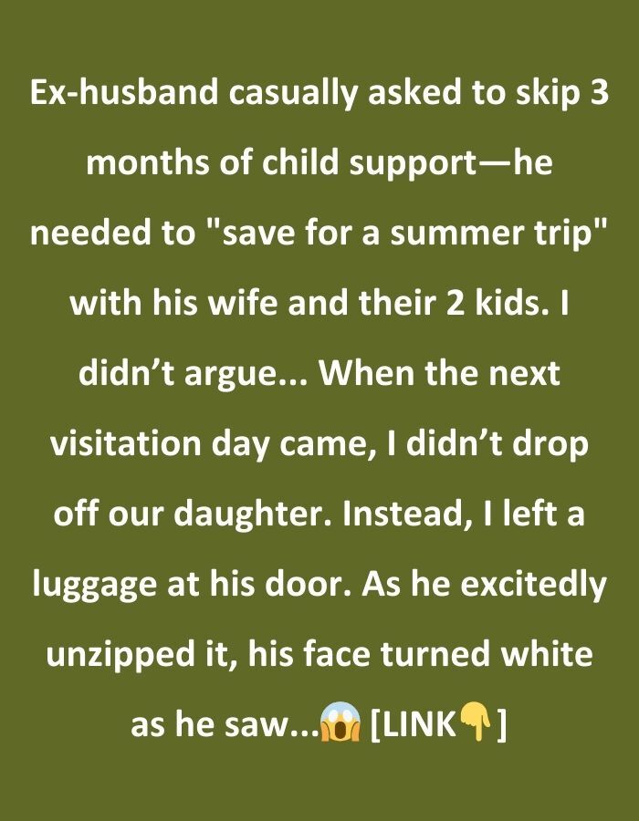 Ex-husband casually asked to skip 3 months of child support—he needed to “save for a summer trip” with his wife and their 2 kids.
