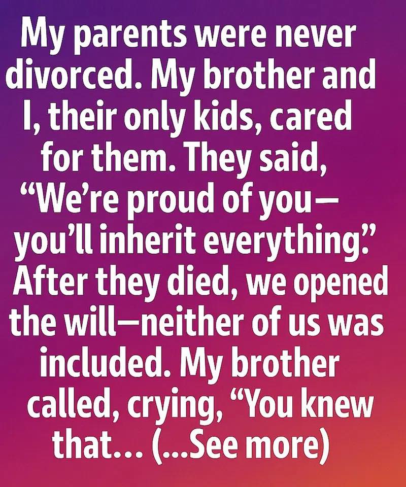 After they passed away, we opened the will — neither of us was included. My brother called, crying, “You knew that…”