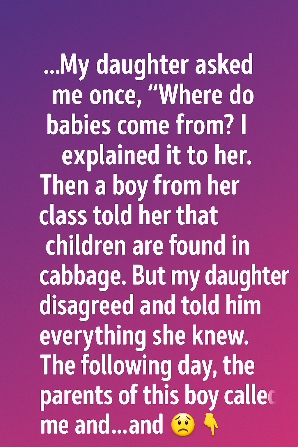 The following day, the boy’s parents called me and asked to meet. I felt nervous, wondering if my explanation had caused trouble. When we met, they looked serious and explained that their “cabbage story” was a fun family tradition, passed down for generations to make the topic lighthearted for kids. Their son had been upset when he felt his story wasn’t true anymore.