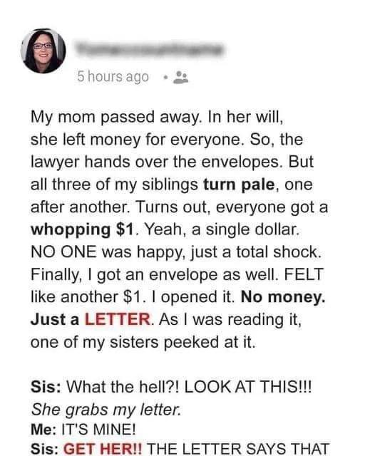 Overwhelmed with emotion, I realized Mom had seen the truth all along. While Samira’s actions were driven by greed, Mom’s final gift was a message of love and trust. With her blessing, I vowed to honor her memory by living with kindness and ensuring her legacy would help others, just as she had always done for our family.