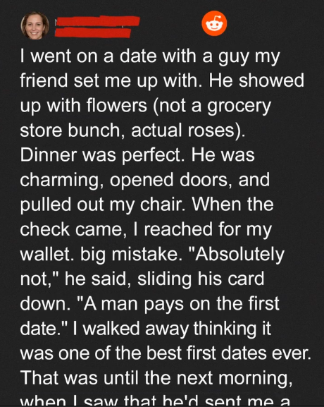 When the bill arrived, he firmly insisted on paying, saying, “A man covers the first date.” His tone surprised me slightly, but I let it go and thanked him. I went home smiling, thinking I’d just had one of my best first dates ever. The next morning, I was excited to see a message from him, assuming it was a sweet follow-up. Instead, it was a detailed invoice.