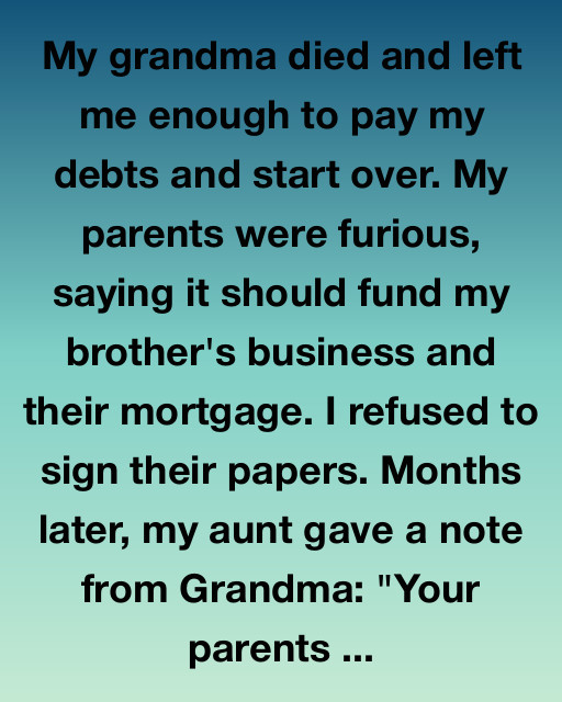I could’ve pressed charges. I could’ve gone public. Instead, I mailed my parents a copy of the real will with a note: “I know.” They never replied. My aunt called and said, “Your grandma knew exactly what she was doing.”