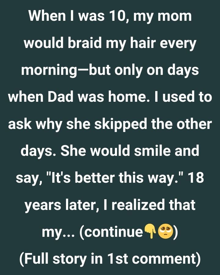 When I was 10, my mom would braid my hair every morning—but only on days when Dad was home.