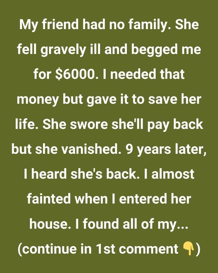 I needed that money, but gave it to save her life. She swore she’d pay me back, said it with tears in her eyes, holding my hand like I was her only hope.