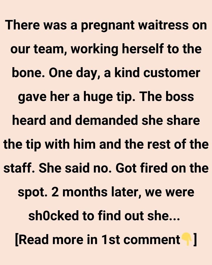 Two months passed. Life went on at the diner, but it felt emptier without Marissa’s laughter. We heard rumors she was struggling, couch-surfing, trying to save up before the baby arrived. Some of us even pooled a bit of cash for her, but it never felt like enough.