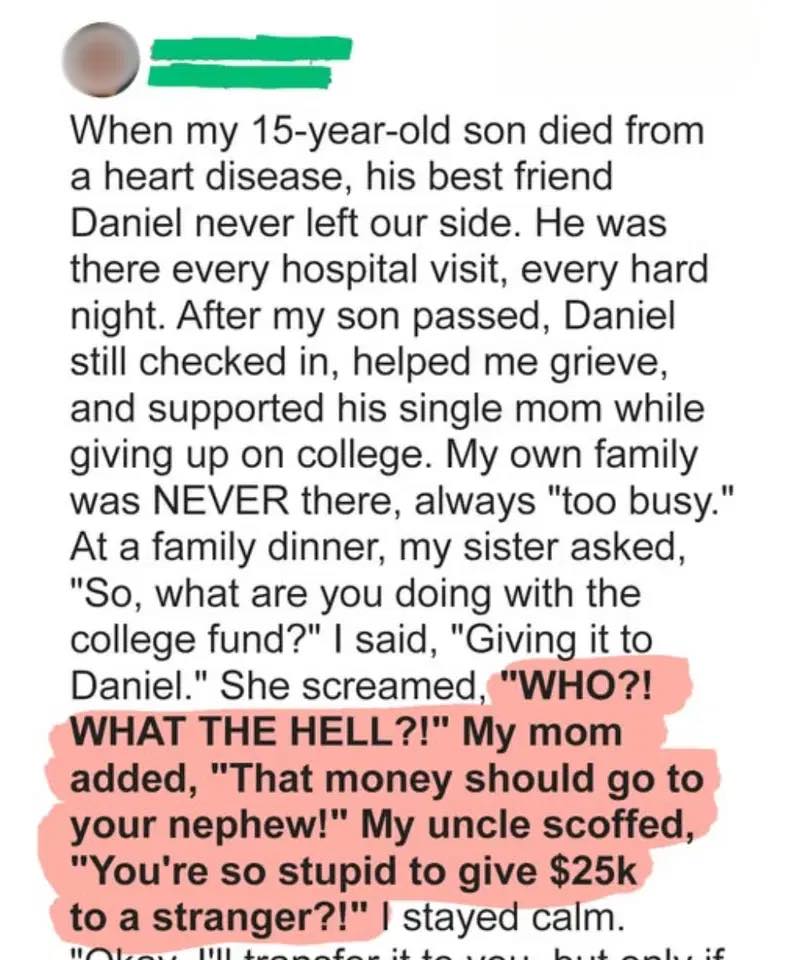 A week later, I joined my family for dinner at my sister Rebecca’s house. Everything seemed normal until she asked, “Scott, what are you doing with Ben’s college fund?”