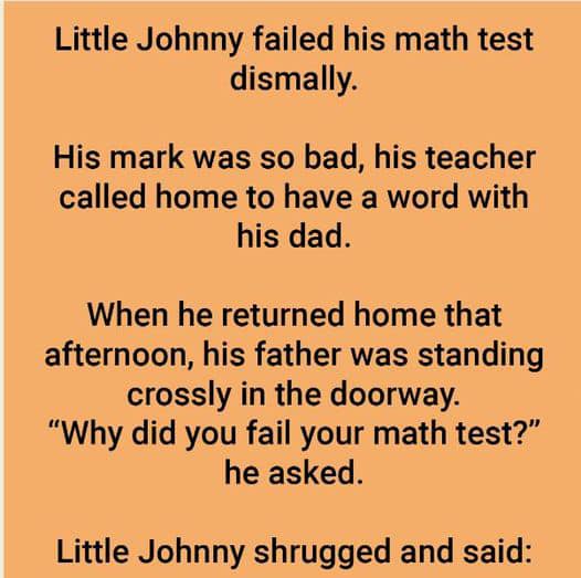 His mark was so low that his teacher felt concerned and called home to speak with his father. When Johnny returned that afternoon, he found his dad waiting at the doorway with a serious expression. “Why did you fail your math test?” his father asked. Johnny hesitated, looked down, and quietly replied, “I tried… but the numbers just didn’t make sense.”