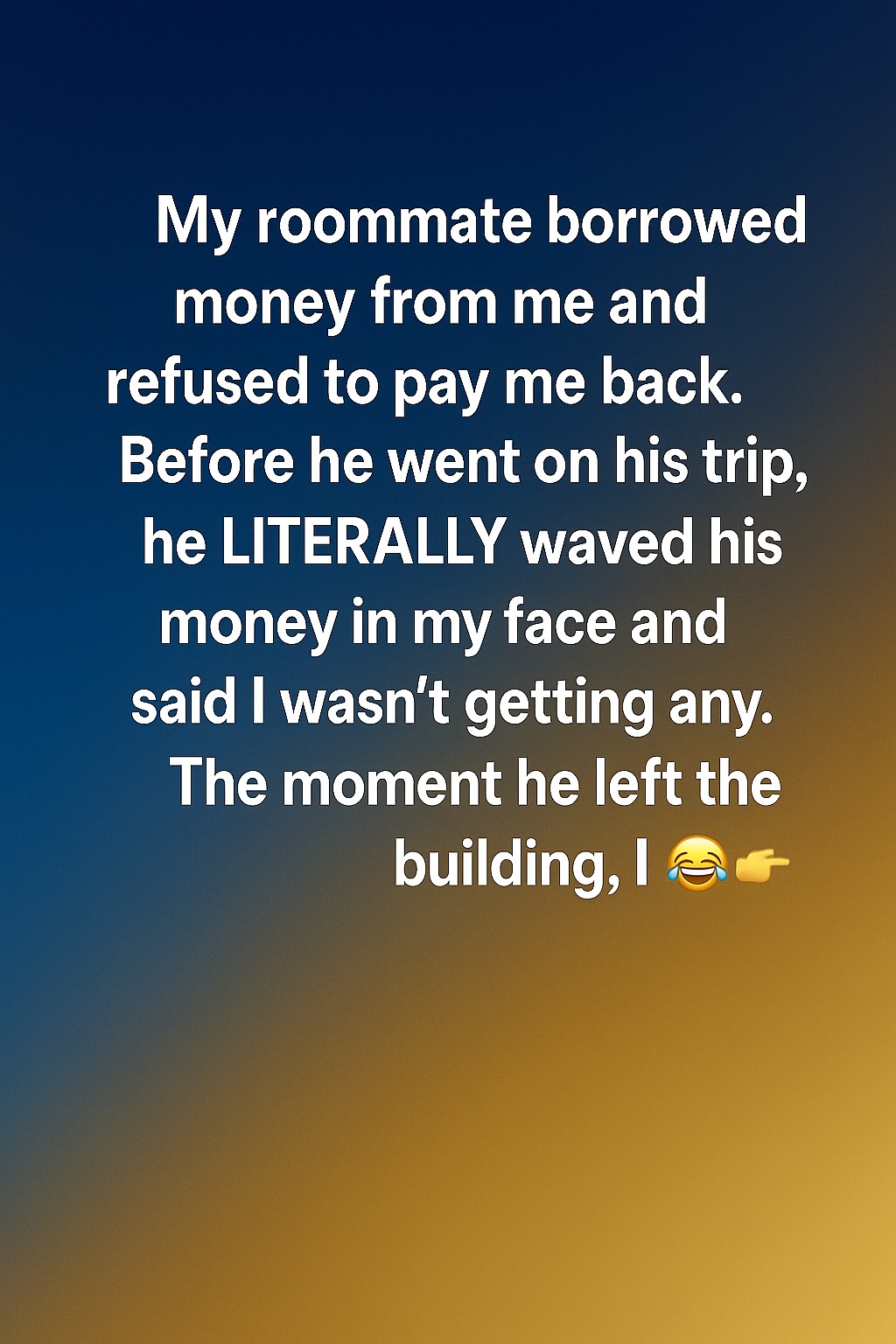 That day, I learned that peace of mind is worth more than money owed. Sometimes, silence teaches louder lessons than words ever could. My roommate eventually repaid me, not because I asked — but because he realized kindness doesn’t mean weakness. In the end, I didn’t just get my money back; I gained respect, calm, and a little wisdom about letting life handle what we can’t.