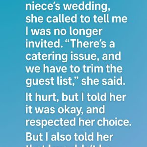 A day before my niece’s wedding, she called to tell me I was no longer invited. “There’s a catering issue, and we have to trim the guest…