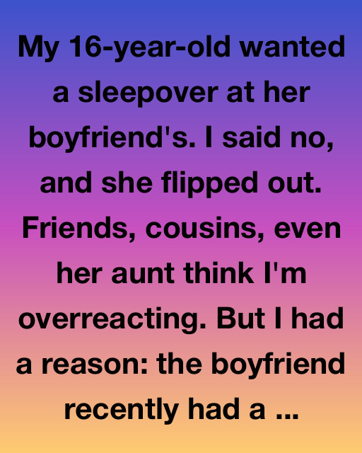 My 16-year-old wanted a sleepover at her boyfriend’s. I said no, and she flipped out. Friends, cousins, even her aunt think I’m overreacting. But I had a reason: the boyfriend recently had a party at his house while his parents were out of town, and the police got called.