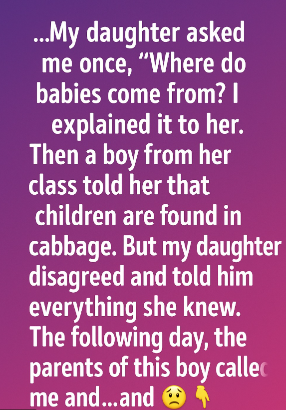 A week later, the school held a “Garden of Stories” day. The children drew their own versions of where life begins — some drew cabbages, others drew stars, and some drew families holding hands. My daughter proudly said, “Stories are like seeds. They grow in different ways, but they all make the world beautiful.” The boy nodded and added with a smile, “And sometimes, even cabbages can grow magic!”