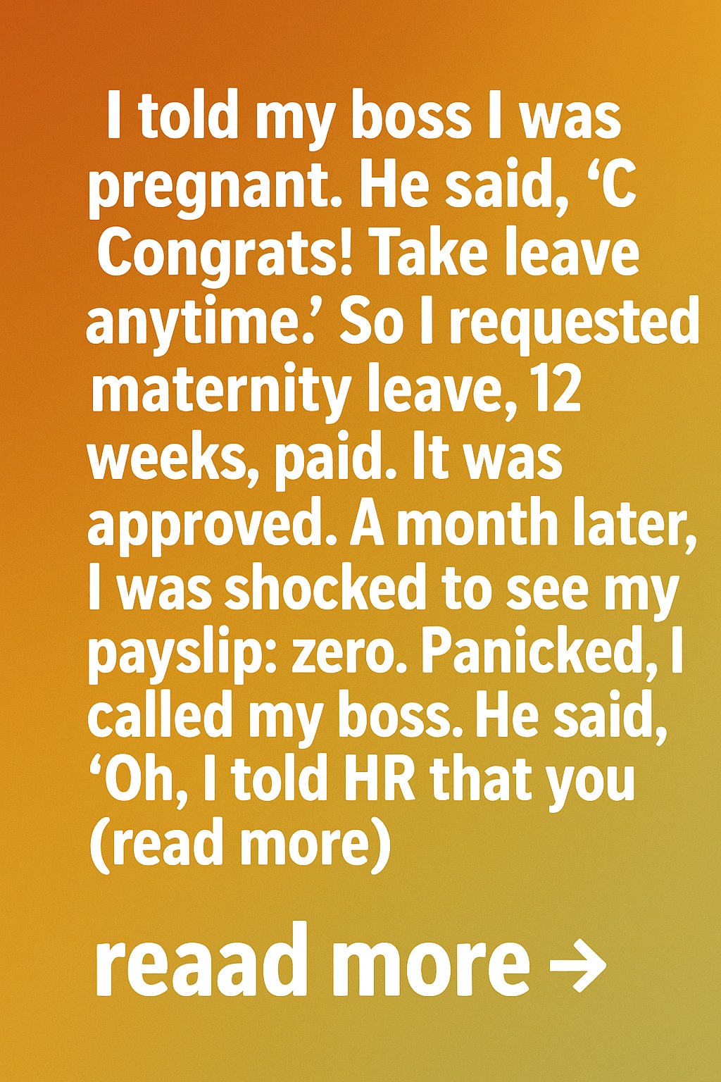 He said, “Congrats! Take leave anytime.” So, I requested maternity leave 12 weeks, fully paid. The request was approved, and I felt relieved, thinking my company truly supported me during this life-changing moment. Everything seemed perfect until a month later, when I checked my online payslip and saw the shocking number: zero.