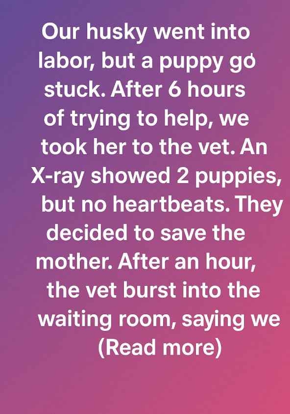 Our husky went into labor, but a puppy got stuck. After six exhausting hours of trying to help, we realized we couldn’t do it alone. With heavy hearts, we rushed her to the nearest emergency vet clinic. The X-ray revealed two puppies inside, but there were no signs of a heartbeat. The vet gently explained that they needed to act fast to save our husky, Luna.