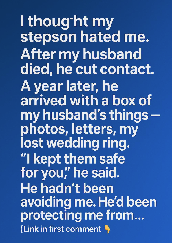 He hadn’t been avoiding me. He’d been protecting me from the truth. Inside that box were my husband’s things—photos from our early years, love letters he’d written me, and at the very bottom, my lost wedding ring. It was a symbol of everything I thought was gone, everything I thought I would never see again. The ring, which had slipped off my finger the day my husband was buried, was now in my hands, returned by the person who I thought had forgotten me. As I sifted through the memories, my stepson finally spoke. “I didn’t want you to know… but after everything happened, I found something. Something that might have hurt you even more. I kept it from you. I thought it was best.”