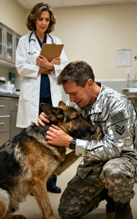 Marcus knelt, pressed his brow to Rex’s graying fur, and whispered, “You did your duty, buddy. I’m here.” Rex’s tail thumped once—ritual, recognition, love.