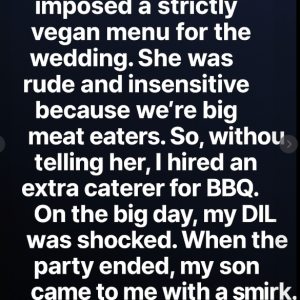 My son’s bride imposed a strictly vegan menu for the wedding. She was passionate about her lifestyle, and while I respected her choices, she didn’t leave room…