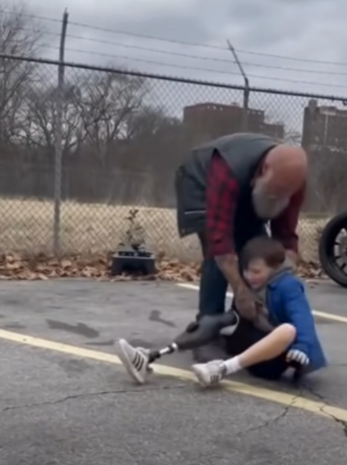He tied the chair to the back, sat Ollie in front of him, and rode—slowly, carefully, through backroads and quiet streets—until they reached a custom bike and wheelchair shop on the edge of town.