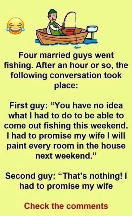 âYou guys have no idea what I went through to get here,â he said. âI spent all weekend painting the entire houseâevery wall, every ceilingâjust so my wife would let me come fishing today.â