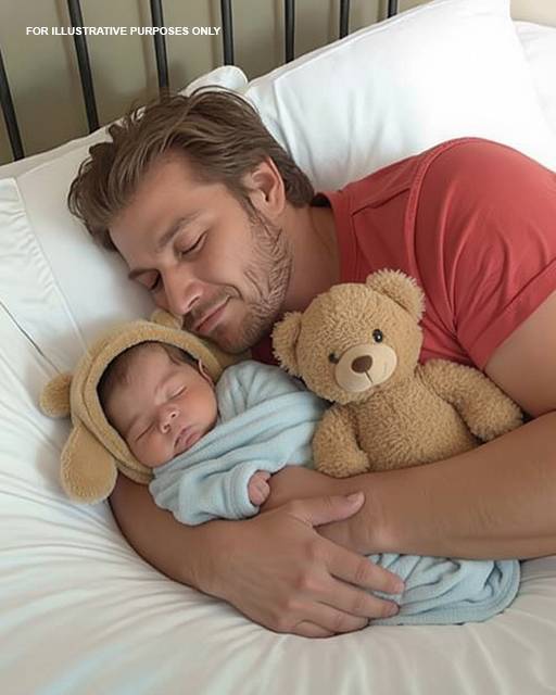 A tiny boy, wrapped snugly in a sky-blue blanket, sleeping as if the universe carried no weight at all. His small hand peeked out, curled gently near his face. Someone had placed a soft pillow against the side of the bed to keep him from rolling.