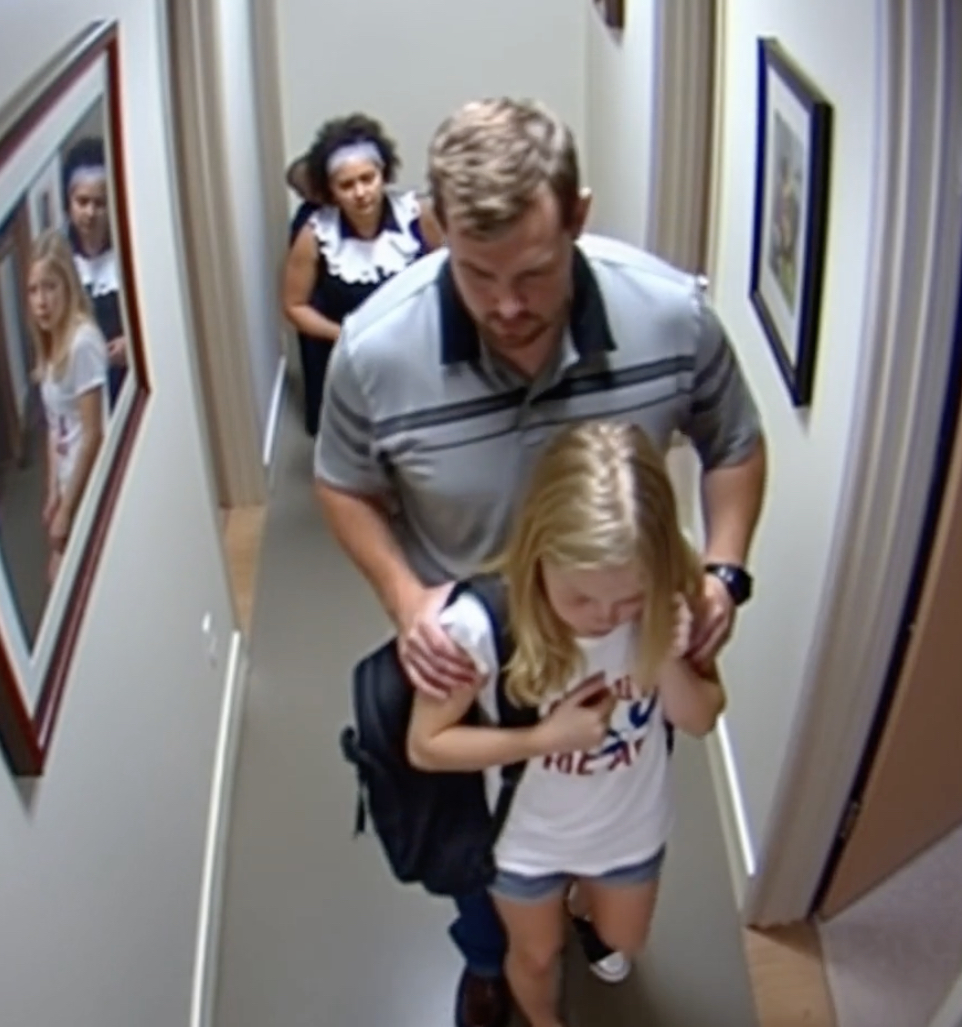 Moments later, the door opened, and Angela held her breath, praying for the girl’s safety. She couldn’t see inside, but within minutes, one officer led Daniel out of the room, his hands cuffed behind his back. The other emerged with the girl, who clutched her pink backpack as if it were a lifeline.