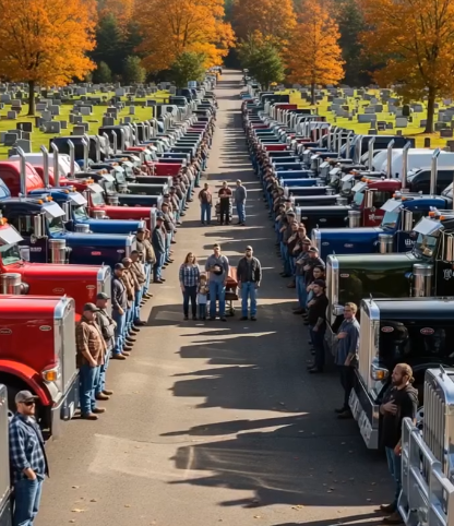The sun blazed over the cemetery as forty-seven trucks lined the road in perfect formation. Their engines were silent, yet the presence of so many leather-clad drivers spoke louder than words.