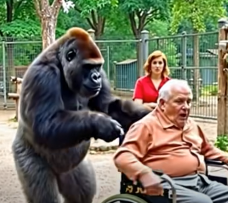 The gorilla, a majestic creature named Koko, had always been a bit of an enigma. Known for her peculiar attachment to certain visitors, she had never shown any aggression before. Her unexpected actions with the elderly man in the wheelchair left everyone puzzled and on edge. As Koko stood towering over him, the crowd held its collective breath, waiting to see what would happen next.