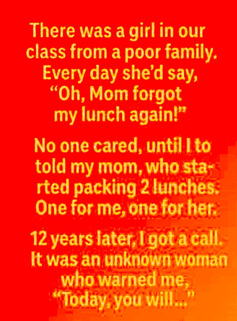 Twelve years later, an unfamiliar number lit up my phone. When I answered, a warm, familiar voice said my name. It was her. She hadn’t called for anything dramatic—just to say thank you. She told me her family had been struggling quietly back then. Those lunches weren’t just food to her; they were proof that someone saw her. That she mattered. “You didn’t just feed me,” she said. “You made me feel cared for.”