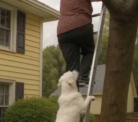 I placed the ladder against the trunk and tested its steadiness. As soon as my boot touched the first rung, Max froze. His entire body went rigid, his eyes locked on mine with a tension I hadn’t seen before. I dismissed it with a quick laugh. “Relax, buddy. I’ll be down in a minute.” I climbed another rung, and that’s when I felt the tug. Not a gentle nudge—this was a sharp, insistent pull at the cuff of my trousers. I looked down, startled, and saw Max clamped onto the fabric, teeth gripping hard enough that I nearly slipped. “Hey! What’s gotten into you?” I said, trying to shake him off without hurting him. He wouldn’t let go. He braced himself, digging his paws into the dirt, eyes wild with a warning I didn’t understand.