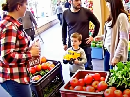 I looked down at Jacob, his innocent eyes taking in the scene with curiosity. He didn’t understand the complexities, the adult tangles of love and loss that had brought us to this moment. To him, this was just another day at the market, another adventure with his mom.