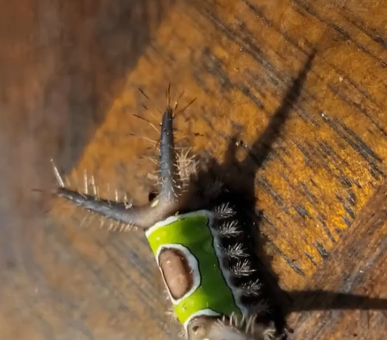 A quick search told me that this tiny creature carried venomous spines capable of delivering a painful sting. The thought that I had been seconds away from picking it up with my hands made me pause with a mix of relief and disbelief. It was a clear reminder that even everyday spaces can hold small surprises. Wanting to remove it safely, I grabbed a jar and a long utensil, guiding the caterpillar inside with slow and careful movements.
