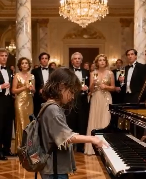 The ballroom sparkled that evening — chandeliers glowing, violins playing, and guests dressed in their finest. It was the “Voices of Tomorrow” charity gala, a night meant to celebrate promise and success. But standing quietly near the door was Lydia — a thin, barefoot girl whose eyes carried both hunger and determination. Life had not been kind to her in recent months. She had lost her home, her comfort, and the music lessons she once loved. Still, she clung to a single memory that gave her strength: the sound of her mother’s laughter as she played the piano years ago.
